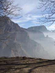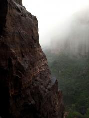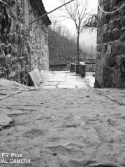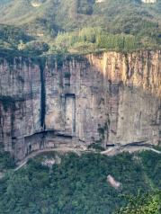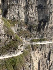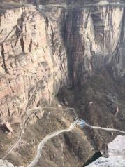如今的郭亮村声名远扬,八方游客络绎不绝。但小山村的宁静,原生态也在悄然改变,到处是客栈、饭馆、小铺,人来人往,乘景区车排大队,显得有点乱。 巍巍太行,层峦叠嶂,云遮雾蔚。 郭亮村是太行山上的一颗明珠,郭亮人的壮举万古流芳。 隔着万丈深渊的大峡谷看对面,壁挂公路从笔直、陡峭的岩壁腹中穿过。 蜿蜒曲折的进山公路似彩链舞动在大山间。 绝壁长廊,人定胜天。 郭亮村的房子倚山崖而建,村前咫尺是百米悬崖,村后是高耸的山峰,自古交通闭塞,出山艰难,只有一条小路通向山外,天梯是郭亮人的必经之路,720级台阶,镶嵌在200米高的绝壁上,最窄处20多公分,险要处须侧身才能通过。