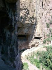 郭亮村被誉为悬崖绝壁上的村庄。上郭亮村要经过一段绝壁长廊,这条路是在1972年到1977年间全部由郭亮村村民独立、手工挖掘出来的,真是不容易。