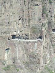 郭亮村,因一条绝壁公路而闻名于世。 高山流水 郭亮村这个名子,开始被世人所知应该是《感动中国》的一期节目,而我是因为《举起手来》这部电影才知了郭亮,后来又在网上看到一个中国最值得去的三十个地方的贴子,上面排名第一的就是郭亮,从那以后,我就想抽时间去看一看,看看那条挂壁公路,看看那壮观的太行山脉。 郭亮,地处辉县万仙山风景区,与山西省的晋城陵川县接壤。郭亮村人在太行山中开凿出来的挂壁公路,如今这里已成为国内的一处旅游胜地,不少自驾游爱好者也来这里体验挂壁公路;也有用步行方式来体验的,我是跟携程团队游方式过来的,不知什么缘因,我团就我们夫妻二人,携程公司派了一辆小车载着我们来到了举世无双的挂壁公路