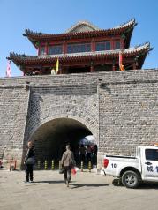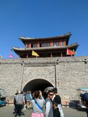 兴城古城离兴城市火车站非常的近,兴城火车站现在正在装修。我感觉走过去最合适,到永宁门只有二三百米,不过我是从海滨浴场过去的,坐一路在南关下车,然后往回走的第一条大街道左拐直走就是古城的延辉门。个人觉得延辉门才是正门,因为城墙上有红夷大炮,我问城楼下的检票员,告诉我四个城门都一样,所以我就在永宁门等上去的