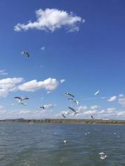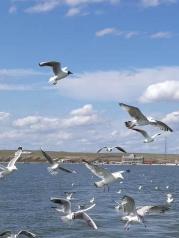 呼伦湖当地牧人称它为达赉诺尔其90[%]的水域,位于内蒙古自治区呼伦贝尔草原西部的新巴尔虎右旗境内,为构造成因的矿化度受环境影响较大的淡水湖。 可坐游船并喂食海鸥,游船100一个人,40分钟。喂食一盆鱼50元