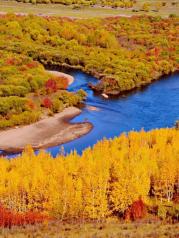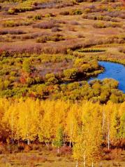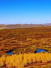 位于根河、额尔古纳河、得尔布干河和哈乌尔河交汇处的根河湿地又叫“西山湿地”。它是亚洲第一的高原湿地。秋天的根河一望无际,处处是最绚烂多彩的秋色,到处是金灿灿的美景和醉人的秋色。金黄的草原,金黄的胡杨林,金黄色的夕阳,灵动飘逸的湖水,不管从哪个角度看,都仿似一幅幅流动的风景画,都是令人为之震撼的深秋之景!