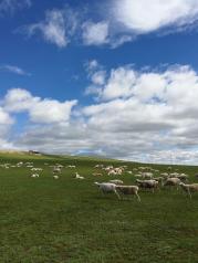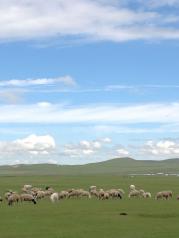 出了海拉尔市区往南,就进入了传说中的呼伦贝尔大草原,蓝天白云、晴空万里,碧野绿草,草地上悠闲自在地吃草的牛羊,令人顿觉神清气爽,心胸豁然开朗。