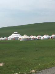 呼伦贝尔草原是我国目前保存最完好的草原,有"牧草王国"之称。我们来到这里,选择了莫日格勒河和呼和诺尔草原两处景点。在网上只要搜呼伦贝尔草原,莫日格勒河畔草原的图片绝对是最有代表性的一张。这里有蒙古包等旅游设施,最重要的是这里有着被称为最美的莫日格勒河,天下第一曲水的莫日格勒河,蓝天、白云、无边的草原、成群的牛羊,河道九曲十八弯的优美曲线,将辽阔的大草原勾勒得如诗如画。网上介绍:呼和诺尔草原是呼伦贝尔大草原的代表。坦荡无垠的草原环抱着波光潋滟的呼和诺尔湖。草原绿茵如毯,鲜花烂漫,蒙古包点点,犹如绿海中的白帆。两处的风光都很美,我们还在帐篷里品尝了手抓羊肉、韭菜