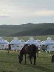 从呼伦贝尔的首府海拉尔出发, 前往草原腹地九曲十八弯的莫日格勒河畔。一路草原风光,阳光明媚,风和日丽。抵达后首先参与了流传千余年的蒙古族传统祭祀活动~顺时针绕三圈祭敖包,祈福平安吉祥。这里是呼伦贝尔的天然牧场,虽然草原的草刚刚泛绿,但在遍野的牛马羊点缀下也显出了一派生机盎然。