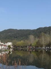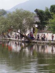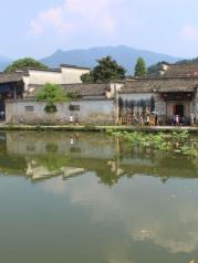 位于宏村外,走过此湖即离开了宏村。名虽为湖,其实就是一个稍大点的水塘,池水混浊却没多少异味,估计有天然水源。水面上只有零落的几许荷叶和偶尔可见的几只水鸭。