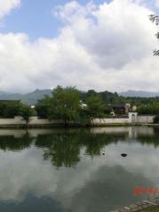 南湖宏村的南湖和月昭是两大自然景点,很美丽的湖,很美丽的倒影。去时天气晴朗,垂柳、荷叶、白墙灰瓦倒映在水中,一幅美丽的水墨画