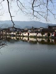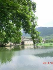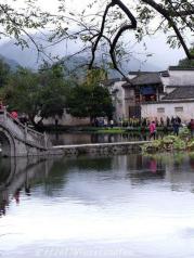 南湖在宏村入口,宏村南侧,仿西湖样 子建造。湖上有画桥,湖边是一趟徽式建筑,从湖边看过去如诗如画,每个角度都是画。好多摄影师被这里吸引,游客们也在这里驻足好久。