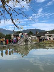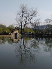 南湖位于宏村的最南面,是李安导演的电影卧虎藏龙的拍摄地,当年周润发就是在这座画桥上牵着马走过的。现在这里俨然成了各个游客来的聚集的地方了
