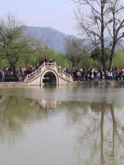 南湖最美的画桥,精致小巧。像一条玉带横在水面。《卧虎藏龙》中的李慕白就在此牵着骏马优雅地走过。