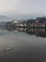 一早起来就来到南湖参观,游人不多,有几个学生正在写生创作。湖面平静,小鸭子自由自在的玩耍,徽派建筑倒影在湖中,非常漂亮,远处的群山雾色缭绕。