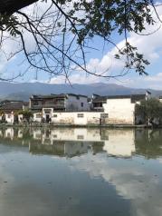 南湖在宏村入口.宏村南侧,仿西湖样子建造。湖上有画桥,湖边是一趟徽式建筑,从湖边看过去如诗如画,每个角度都是画。好多摄影师被这里吸引,游客们也在这里驻足好久。
