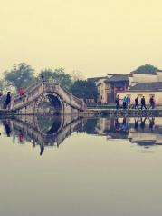 南湖,美丽的南湖,平滑如镜,古树环绕,水面投射出古桥、古民居的倒影,一幅令人流连的山水画卷。顺着湖边的堤路走着,看着倒映在湖里的映像,湖光山色与层楼叠院和谐共处,四周山色与粉墙黛瓦倒影湖中,好似一幅徐徐展开的画卷。人在画中走,画在心里留