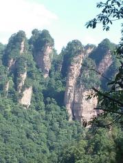 从凤凰搭大巴到张家界市区,然后在车站转专线车12元到森林公园门票站。在凤凰到张家界的大巴上有个有个司机师傅对我们住森林公园门票站很诧异,说现在很少人住森林公园门票站了,都是住武陵源,说武陵源更方便。现在想了想,像我这样准备只在公园内玩的,还是森林公园方便,进去很快就到黄石寨和金鞭溪了。住森林公园门票站就是晚上没有武陵源好玩,武陵源那边晚上可以逛街,不过白天走得那么累,没有街逛更好。要我说,张家界森林公园有逛两天足够了,完全没必要走三四天,我只有一天半的时间,下午三点从森林公园门票站进,玩了黄石寨,走路上,索道下,下来五点多。第二天9点索道上杨家界,逛完乌龙寨天波府,坐环保车到天子山逛贺龙公园,