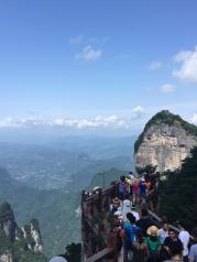 张家界的天气好像一向都不错,在林子里不热,很舒服,我是索道上山,大概20多分钟的样子,然后沿山路一直走过玻璃栈道,玻璃栈道只有一百米的样子,山顶的景色很美,可以看到盘山公路,然后走十二道扶梯下来,强烈推荐999天梯,不要害怕,一定要体验一下!最后坐车从盘山公路下去。各年龄段都可以玩啊,风景秀丽风 光旖旎!