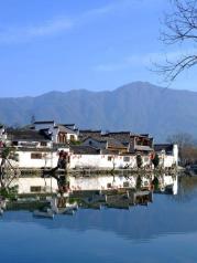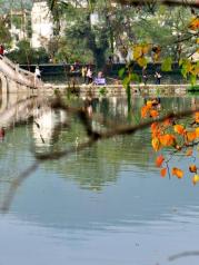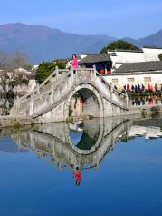 南湖这里就是有“黄山脚下小西湖”之称的南湖。此名来源于清嘉庆甲戊年秋,浙江钱塘名士吴锡麟游南湖后,撰文述道:“宏村南湖游迹之盛堪比浙江西湖”。 南湖上有一石拱小桥,人们从桥上依次通过,身影倒映在湖水中,构成了一幅绝美的风景画。 有诗赞曰:“无边细雨湿春泥,隔雾时闻小鸟啼;杨柳含颦桃带笑,一边吟过画桥西”。现在虽然是冬季,没有细雨鲜花,但景色依旧美丽。