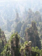 袁家界被称为神秘的“潘多拉世界”,若是雨后,更是能欣赏到云雾缭绕,峰峦叠嶂的迷魂美景,著名的哈利路亚山、迷魂台、天下第一桥等空中绝景都在此处。但这里也是旅游团的必到之处,人是真心多啊!也许一早或下午5点后来,会好一点。感觉一定要俯视一点拍才能拍出它的气势宏伟。整个袁家界非常大,但是景点也很集中。我觉得是武陵源景区风光最美的地方,因电影《阿凡达》中的悬浮山也取景于此地而名声大噪。在袁家界景区,由于水丰林密,空气极为清新。最新测定显示,袁家界景区森林覆盖率高达98%以上,空气中的含尘量和含菌量特别少,而含氧量很高,某些地段每立方米空气中的负氧离子数目近10万个,比通常环境高出500倍左右,俨然是一