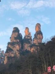 天子山位于张家界国家森林公园的北部,东临索溪峪景区,因明初土家族领袖向大坤自号“向王天子”,而得名。在这里有机会可以观赏到云雾、月夜、霞日、冬雪四大奇观。亿万年前的天子山是一片汪洋大海,后来由于复杂而漫长的地质过程,形成了天子山中的御笔峰、仙女献花、点将台、空中田园、仙人桥等各种造型奇异的地质景观。
