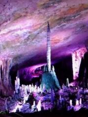 从大门口到黄龙洞洞口还有好长的路。路上亭台楼阁,还有一长串的连环水车是看点,但其实风景不足一提,不如直接把大门造到洞口,我又想当然了。到洞口要排队,限制每次进入的人数,由景点导游统一带入。进洞后,你会发现就像完全进入了另外一个世界,有种“地下龙宫”的感觉。蜿蜒曲折的道路绕来绕去,来到洞里的一池水边,要坐船游览一段。好多人坐在一艘船上,在狭隘的岩洞下的溪水上漂流,有点盗墓笔记或是大漠苍狼里描述的感觉,非常逼真。船边黑漆漆的溪水,不见底的神秘,就怕像故事里突然会有不明的水中生物蹿上来把我们拖下去。下了船继续是上上下下蜿蜒曲折的楼梯,沿着洞内峭壁来来回回的路,真有种盗墓和大漠的感觉。空气冷飕飕,