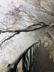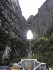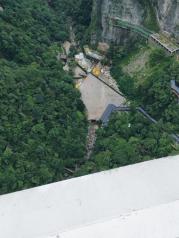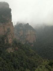 天门山景区索道很长,。天气原因山顶都是雾,看不清。玻璃栈道都看不出脚下的景,在天门洞的时候雾很浓,下到广场之后那边雾气散了终于能看到一点。去张家界真的一定要选个好天气。太受天气影响了