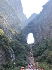 天门山景区是到张家界的第一站,虽然是错峰出行,但排队坐索道还是用了大概40分钟。被称为亚洲最长索道,大概要坐28分钟才能到山顶。山上景色别有洞天,还走了玻璃栈道,最后天门洞的999级台阶甚是壮观,还有幸看到了跳伞。