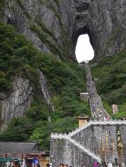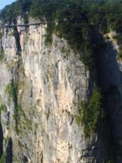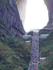 天门山玻璃栈道悬于天门山顶西线,长60米,宽1.6米,最高处海拔1430米。是湖南省张家界天门山景区继悬于峭壁之上的鬼谷栈道、凭空伸出的玻璃眺望台。 2011年10月1日,张家界天门山国家森林公园新建的玻璃栈道正式对游客开放。