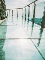 这条看着就让人腿软的天门山玻璃栈道给人带来的刺激震撼感。晴天时,蓝天和白云的倒影铺满了整条栈道,让人在对脚下的透明战战兢兢