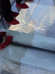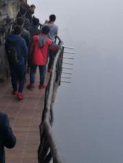 张家界的这条天门山玻璃栈道可能是国内最早的一个,在山顶一侧,长度估计二三百米,宽度大概两米多,需要穿鞋套免得脏了地面。大多数人没有表现出太多害怕。