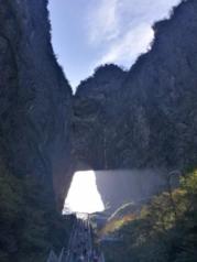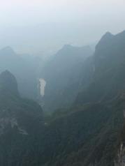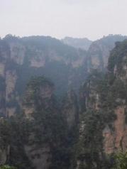 去的时候武陵源天下第一桥在下雨,袁家界全部都在雨云里面,所以看着白茫茫一片。因为大雾,刚到达桥上的时候是不明白有什么特别的,要到侧面去看,才会发现这中震撼。