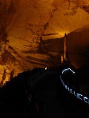 黄龙洞真的很大,洞内分旱洞和水洞,总共有四层。洞内有暗河,还要坐船过一程水路,钟乳石林立,膜拜了投保一亿元的定海神针。整个游览时间大约2小时,没有手机讯号。散客会临时拼团有一位阿妹负责全程讲解,这个服务非常好,很人性化。