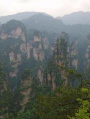 张家界的山峰都是挺拔峻峭,高耸入云,从上面看下去的时候很惊险,途中还有一条铁桥,从铁网看下去是万丈深渊,十分恐怖。虽然很可惜,但是建议有恐高症、心脏病、高血压的人千万不要去。另外,森林公园是一个大氧吧,里面的空气很清新,呼吸很舒服,树木也很多,下去金鞭溪那儿有猴子,它们会抢包,有吃的东西基本上就没了。 还有就是如果晕车的人坐旅游车之前要提前吃好晕车药,旅游车上下基本上就是头文字D式的漂移,下车之后会明显感到头晕。 整个张家界建议玩三天,包括天门山和天子山,紧凑点两天也行,反正看到后面都有点审美疲劳了。
