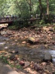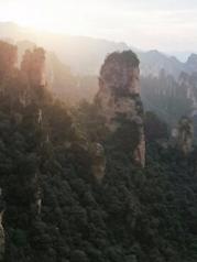张家界的景色让我这从小长在大连的孩子叹为观止。 早上六点集合出发赶往武陵源景区,烟雾缭绕,犹如仙境,小火车行驶其中果然不负十里画廊的名字。发挥自己的想象力,每一处山头都有着一段美丽的传说,山中溪水清澈冷冽。景区内的环保巴士可以把每位游客带去想要到的景点,而且张家界景区还有个特点就是韩国游客特别多,估计是被综艺节目影响了。 主的百丈峡酒店就在景区山谷夹缝一出来河边的开阔地上,出门就是风景,感觉云雾就在触手可及的地方。
