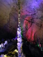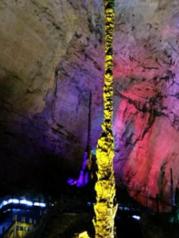 前往张家界旅游的第一站就是黄龙洞,位于张家界市核心景区武陵源风景名胜区内,典型的喀斯特岩溶地貌,黄龙洞规模之多、内容之全、景色之美几乎包揽了《洞穴学》的全部内容。 洞穴内面积广大,还有地下河,沿着弯弯曲曲的台阶一路而上,可以看到不同形状的钟乳石奇观,亦或是乘坐小船沿着暗河行驶,观看两岸的美景,真是眼花缭乱。 印象最深的莫过于“定海神针”,一个极细极高的石柱,讲解员说这根石柱还在不断生长,未来会与洞顶相连。