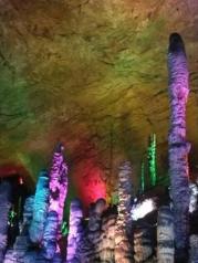 进入黄龙洞,是由石钟乳和石笋组成,据说里面有一根被投保1亿的石笋,高20米,据说每100年才能长1cm。在洞内不走回头路,进入洞内会有阿妹带领大家逛洞,每个阿妹带的队所走路线都不一样,我们是在最后坐了游船,大约8分钟,再走一会,就到出口了,整个洞内逛完大约需要2个小时。。。