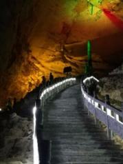 黄龙洞的钟乳石在灯光的照射下呈现美景很壮观,游船游响水河短暂但是下船后,之后所在地方位于12米河下方路段到令我一惊,但是长时间的上下楼梯确实令人很疲惫,整体评分80.