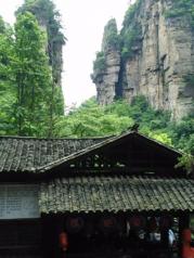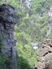 进入乌龙寨前,要经过三个关卡。第一关像一般的哨卡;第二关是绕来绕去的台阶,台阶非常窄;第三关只能容一个人侧身通过。亲生经过这几个关卡的体验,可以看出地形的险峻和当时解放军剿匪的艰难。 更险要的是天波府,它更像是乌龙寨的瞭望台,当然在天波府上可以看到一番更美丽的风景。上天波府需要经受心理考验,一座险桥架在悬崖峭壁上,就怕人走在上面不小心掉下去,紧接是一座天梯,几近垂直,我紧紧抓牢栏杆,就怕有半点马虎。下来时,双腿直哆嗦。一步、两步......心里一直数着,怎么还没到地面。 乌龙寨乌龙寨大门,从这里就要开始爬山了。可能植物对岩体的破坏比较大,随时可能掉下一块石头天波府乌龙寨一线天乌龙寨点歌台天子山
