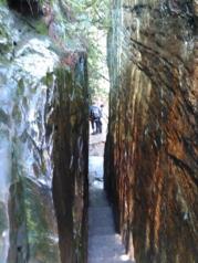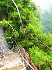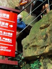 乌龙寨是杨家界的主要景点之一,陡峭、险峻,登石阶穿石缝很有意思,有的地方需手脚并用,对体力有相当的考验。一路攀爬而上是其最高处天波府,架于悬崖之上的吊桥已经成为危桥被封闭,需从下方另一条临时小路绕行,尽管有警示牌,依然有不少游客钻过栏杆走上危桥,看得心惊胆战。望景区加强管理,以免万一悲剧发生。