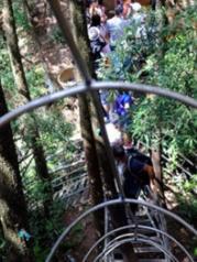 乌龙寨的不得不低头,人生便是如此吧,总有那么些不得不低头的时候,低头又如何呢,暂时的低头只是为了攀上更高峰不是么?~天波府,雨后雾气缭绕于山峰之间,犹如那一幅幅水墨画。用大宝贝的话讲:终于把网上的照片拍到了自己的相机里了。 这是通过乌龙寨后还要爬的一个好陡的梯子,两边都是悬崖,真的是快吓尿了~不过历经千难万险之后总是会有不一样的风景在等着我们~有小伙伴好奇为什么这些小猴子居然在排队么?因为大宝贝把我的例子全喂给他们了!~!~(建议不要喂食,猴子因为抢食而伤人的事情不是没有发生过,还是小心一点的好吧~)