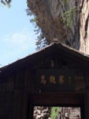 从杨家界索道上站到乌龙寨不远但是要爬山,而且路很危险,建议老人小孩的别去为好,要想上坐滑竿,好像60吧抬你上去千辛万苦到了门口,没有想到这才开始啊乌龙寨有三道鬼门关,第一道叫”一步难行“,小路一个急弯向右,一块岩石兀然突出,人必须紧贴着岩壁,慢慢转过去,一不小心,就会坠入山崖,只要派一个人持刀守候,再多的人也不在话下 第二道关”谁能不低头“钻洞绕石,似路非路,几米外便难见人,百余米的路,艰难曲折,人需要弯腰才能上行第三道关”一夫关“石路从两块巨石间穿过,人须侧身才能慢慢上行,一夫当关,万夫莫开乌龙寨能立足多年,并非徒有虚名啊 过了三关才能进到寨子里,这里可以穿土匪服装照相,旁边还有压寨夫人与您