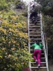 其实整个乌龙寨景区,就是有大雾,也能玩的很尽兴,因为里面狭窄的的山路走起来特别有趣。 索桥被关闭了,我们爬了接近垂直的梯子上去,这个是乌龙寨景区最好玩最好玩的地方,没有之一。边上就是悬崖,连凸起的石头都看不到,我抓着细细的钢管,一个台阶一个台阶的上去,上去后,就有个很可爱的女孩子来拉我上去,还帮我照相,虽然在上面的整个过程我的腿都在哆嗦,但是超刺激有莫有。 重点是我们要原路返回哦,下去的时候我已经不太怕了,还拿着手机给自己自拍,我不禁为自己的大胆默默的点了个赞。