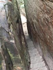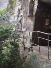 乌龙寨原名叫“黑龙寨”,以前是土匪居住的地方,地处偏远、关隘险绝,四面悬崖,仅有一道上下,地势险要,所谓一夫当关,万夫莫开。乌龙寨历史的痕迹还残留着,只是昔日的土匪不知所向,慢慢成为一段令人遗忘的往事。要继续前进的路,悄然间已不那么分明,钻洞绕石,似路非路,几米外便难见人,百余米的路,艰难曲折,人需要弯腰才能上行。后来听上去的人说,以及在图册里了解到,天波府可以观赏到天然形成的四道石壁,一排排,一片片,如战队,如列兵,依次排开,削立犹如城墙,壮观灵秀,满目空旷,开阔无比,奇峰异石,佳景天成。