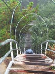 乘坐景区电瓶车到乌龙寨,到达杨家界景区。 金鸡报晓观景台值得一看。 一步登天需要爬一条简陋单薄、几乎90度的铁梯,建议不要穿裙子。这边游客较少,比较舒适。(到一步登天一定要走地图上的小路,泥泞小道很少人,来回可节省约1小时的路程。)