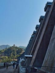 佛子岭水库,走大坝花了半小时左右,从大坝看下去的山林里有一座白色的欧式建筑,其实是佛子岭水库管理处,在秋日暖阳下,特别美。去那天因为水位高,不能上岛,就是坐船在水库游了大半小时,看看竹林,听听鹰叫,