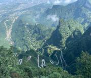 天门山景区绝对是值得一去的地方,是因为有很多奇特的地方,缆车很长,7.5公里! 山路逶迤,有九十九道弯!天门洞很大,飞机可以飞过! 天梯陡峭,有九百九十九级台阶!只是碰到云雾太大,山上就看不到景色了。