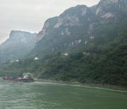 船过巫峡的时候云雾缭绕,虽然看的景色不是很真切,但很漂亮,带有一种朦胧美,有点像水雾中的漓江,但比漓江大气。巫峡是三峡中非常美丽的一段景色。“除却巫山不见云”的景色倒是没有看见,天气晴朗确实难得。