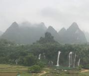 德天瀑布绮丽壮观,归春河碧绿清澈,的确名不虚传,值得从不同角度慢慢欣赏。瀑布冬天水量偏小,夏天去游览会更加震撼!4月中旬去的,水量不是很大,但却也颇为壮观,同时我们也可以比较近距离比接近大瀑布,从景区大门到53号界碑,沿途风光很美,还有越南的小商贩在叫卖……仿佛行走在一幅山水画廊之中,值得一游。