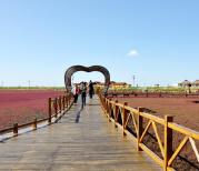 盘锦红海滩国家风景廊道位于辽宁省盘锦市大洼县赵圈河镇境内。第一次看到这样的红色海滩,其实是一种长在海边的红色碱蓬草组成,在其他地方没有见到过。红红的草、一片连着一片,去时可能不算很红,但看着也挺壮观的。景区内有专用观光车,私家车一律不得入内。马路两侧一边是红色海滩,一边是绿色稻田,对比强烈,非常有特色。不过听朋友说,面积比以前有所减少了,真是美景不等人呀!没看过的要抓紧了。 游玩Tips: 1、景区是有季节性的,每年的5月开始对外开放,十月中上旬为生长最旺盛期,也是人最多的。 2、金秋季节,河蟹和大米都是当地特产。