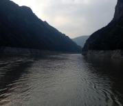 瞿塘峡是长江三峡的起点,起自奉节白帝城。入口处称为夔门,两岸崖壁直立,很是雄峻,有夔门自古天下雄之说。船至此处,可靠岸游览白帝城。我们的游船慢慢逼近了瞿塘峡,我是看着手机上的导航知道接近瞿塘峡了。