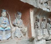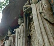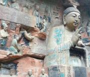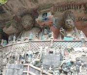 大足石刻主要指大足的宝顶山石刻,可在县城乘公交前往。到游客中心,可乘电瓶车一直到宝顶山下,就可看到精美的石刻,有华严三圣,牧牛图,千手观音,轮回图等。