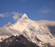梅里雪山的十三座山峰平均海拔6000米以上,当地藏民尊称其为“太子十三峰”,作为藏族的神山,至今未有人攀登过。1991年,中日一支17人的登山队在攀登梅里雪山过程中全军覆没。 能看到“日照金山”,是一种福分。